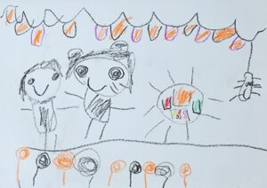 令和7年度 描画展 年少 くるみ組 どんぐりせいじん:どんぐりせいじん。め。くち。ぼうし。みみ。て。あし。あそんでいるところ。 おかあさん:おかあさん。にこにこ。め。くち。て。あし。かみのけ。おかあさんのぜんぶがすき。 らいおん:らいおん。め。くち。かみのけ。あし。あるいているところ。 おかあさん:おかあさん。にっこり。め。くち。あし。みみ。ながいかみのけ。おかあさんのぜんぶがすき。 らいおん:らいおん。め。くち。は。かみのけ。あし。つめ。あるいているところ。 たこ:たこ。すみをだしているの。いっぱいあしがある。め。せんせいについていっているの。 どんぐりせいじん:どんぐりせいじん。め。くち。あし。て。ぼうし。あそんでいる。 ばった:ばった。かお。あし。て。ごはんをたべている。 ともだち:ともだち。め。くち。かみのけ。て。あし。あそんでいるところ。 きりん:きりん。かお。ながいくび。あし。はっぱをたべている。はっぱ。おいしいっていっている。 ともだち:ともだち。わらっているところ。ぴーすをしてぼくとあそんでいる。 せんせい:せんせい。にっこり。め。はな。くち。かみのけしばっているの。て。あし。 ともだち:ともだち。ともだち。わらっている。あかちゃんごっこをしている。 どんぐりせいじん:どんぐりせいじん。め。くち。て。あし。ぼうし。おばけをさがしている。どこだ?っていっている。 しょうぼうじどうしゃ:しょうぼうじどうしゃ。ほーす。はしご。たいや。おかあさん。おとうさん。おにいちゃん。おにいちゃん。わたし。ともだち。みんなでみている。 せんせい:せんせい。にこにこのかお。め。はな。くち。かみのけ。かみのけそっくりにやった。 あいすくりーむ:ちょこあいす。ばにら。いちごあいす。おかあさん。おとうと。わたし。おにいちゃん。おとうさん。せんせい。ともだち。みんなであいすをたべているの。 かめ:かめさん。わらっている。こうら。もよう。あし。て。しっぽ。およいでいるの。 きりん:きりん。かお。もよう。あし。あそんでいるところ。はっぱ。りんご。もぐもぐしている。 しょうぼうじどうしゃ:しょうぼうじどうしゃ。ほーす。はしご。らいと。たいや。おかあさん。わたし。ともだち。おにいちゃん。みんなでみているところ。 ぞう:ぞうさん。め。みずがでているはな。みみ。あし。しっぽ。りんご。さくらんぼ。ちょこあいす。いちご。はっぱ。きゃべつ。きゅうり。ごはんをたべているの。 あいすくりーむ:いちごあいす。ばにら。ちょこあいす。かさなっている。おかあさん。おとうさん。せんせい。みんなでたべている。 はなたば:きれいなおはな。おかあさん。おとうさん。せんせい。きれいだなっていっている。 たこ:たこ。め。くち。あし。およいでいる。 年少 もみじ組 かめ:かめがどこかにいってきえた。 たこ:なにかたべている。ぱふぇ。きゃらめるこーんも。 だいすきなひと:おかあさん。あそんでいる。これはへびのおかあさん。 おかあさん:にこにこ。めがねをしている。わらっている。 どんぐりせいじん:ひとのかたちをしている。あしもてもある。いっぱい。 ばった:ばった。 だいすきなひと:おとうさん。おしごとをしている。あし。はな。あたま。め。くち。 あいすくりーむ:こーんがあっておいしい。これはおとうさん。あいすをつくっている。これはおかあさん。あいすがいっぱいってみんなでさけんでいる。 かめ:いまおよいでいる。なまえはかめさん。はーとのたべもの。 たこ:たこ。おおきい。 ともだち:ともだち。ともだち。あし。かみのけ。くち。はな。め。 はなたば:おかあさん。おとうさんとあかちゃん。おはな。 せんせい:あそんでいてにっこりしている。 きりん:きりんがあそんでいる。しまうまみたいなやつ。ぶどう。すとろべりー。ばなな。 ばった:あそんでいる。つの。これはあし。 ともだち:これともだち。これはせんせい。これはともだち。みんなであそんでいる。 はなたば:おかあさん。おとうさん。 ぞう:くち。みみ。はな。あとほっぺ。これはきゃべつ。これはにんじん。 おかあさん:めいくをしているおかあさん。くちをこうして、めをこうして、ほっぺもぴんくにしている。はながある。 きりん:ぶらきおざうるすきりん。へんしん。ぐるぐるしている。ぱとろーるかー。おおきいごはん。 きりん:ぶらきおざうるすきりん。へんしん。ぐるぐるしている。ぱとろーるかー。おおきいごはん。 しょうぼうじどうしゃ:はしごとたいや。はじっこをかいた。 ぞう:ぞうさんのひっこし。みみ。はな。あしがふたつ。あかいりんごをたべている。 あいすくりーむ:あいす。いちご。 年中 あんず組 柿の木:柿。木。葉っぱ。食べられない柿。甘い柿。かにさん。大人のかにさん。子どものかにさん。4個柿が落ちてきた。 友達:友達。友達。積み木で遊んでいる。 カメ:カメ。顔。つめ。しっぽ。甲羅。りんご。赤いりんご。色々なジュース。レ